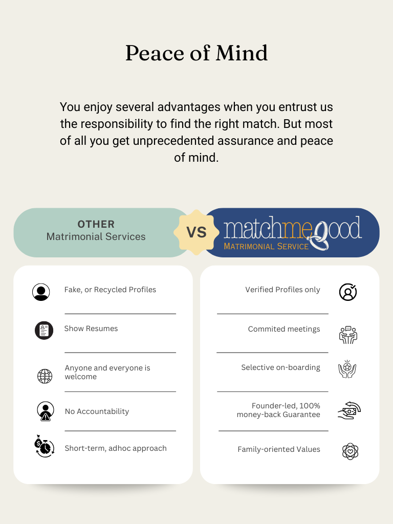 Once you register, we review your application. If we believe we can help, we interview the prospective bride/groom. This helps us get under their skin – understand them well, and learn about their expectations from their prospective partner.